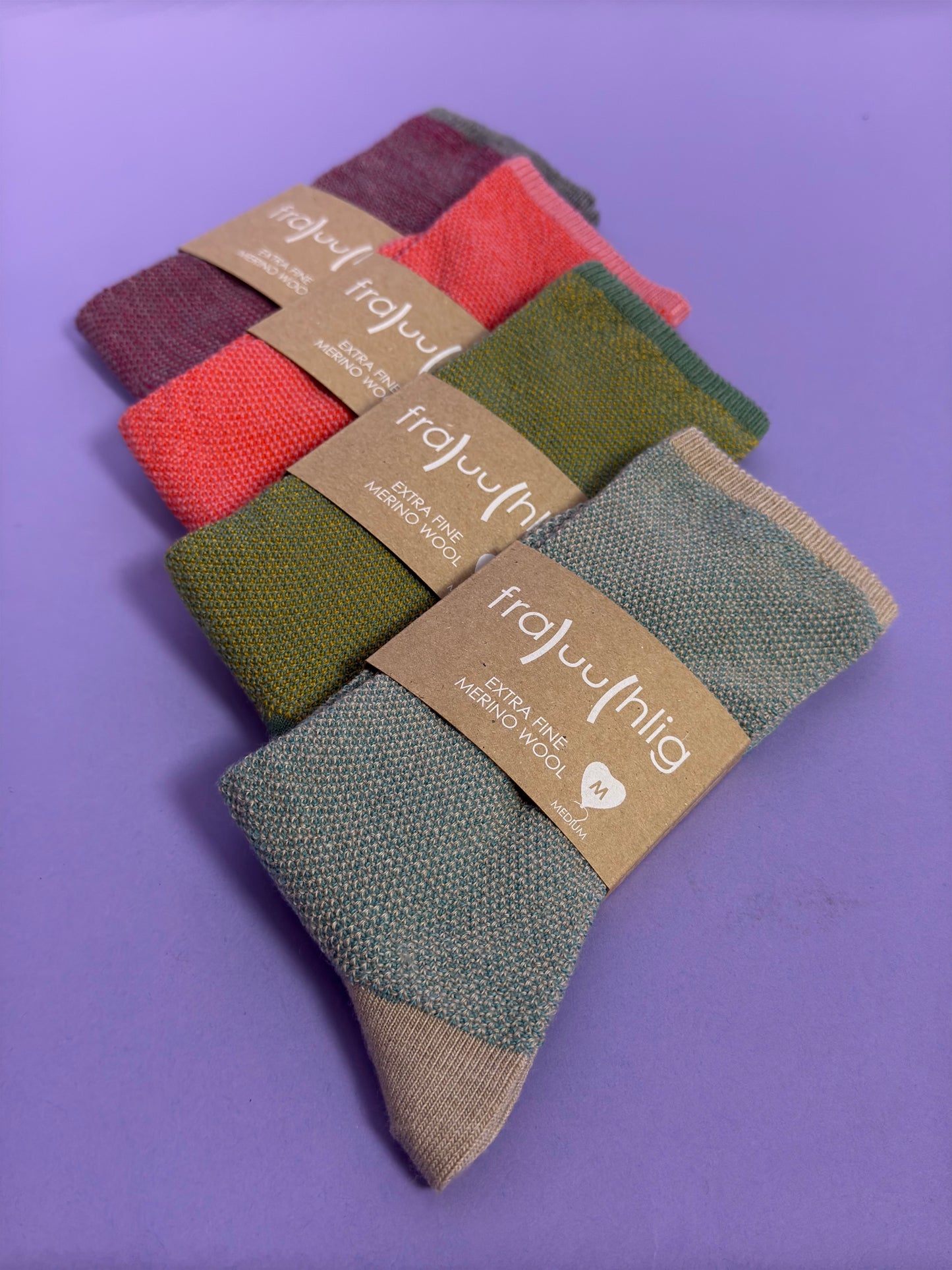 Material: 80% Merino Wolle extra fein, 16% Polyamid, 4% Elasthan