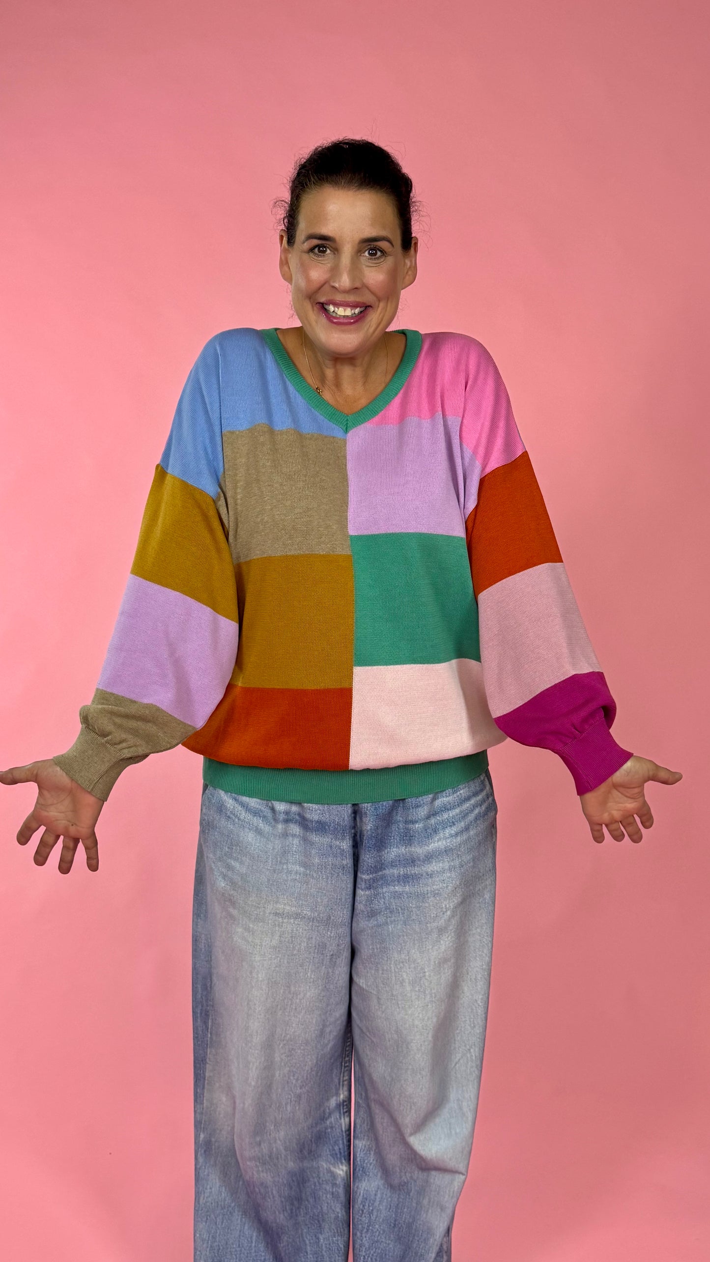 Das „must have“ in meinem Modeuniversum und dein Gute-Laune-Booster, jetzt auch als Pullover. Hast Du Lust auf ein farbenfrohes, einzigartiges it piece, das deine Individualität unterstreicht und mit der Du Deine Persönlichkeit zum Ausdruck bringen kannst? Ein echtes Farbfeuerwerk, mit dem Du durch den Alltag tanzen kannst? Dann ist mein 24/7 Pulli genau das richtige für Dich. Mit diesem Pulli kannst Du Farbe bekennen – trau Dich auffällig zu sein – ich bin es auch! Mit seiner bequemen ballonigen Passform ist der 24/7 der perfekte Begleiter für alle Gelegenheiten, ob im Büro, beim Stadtbummel, im Schulalltag oder gemütlich zu Hause.