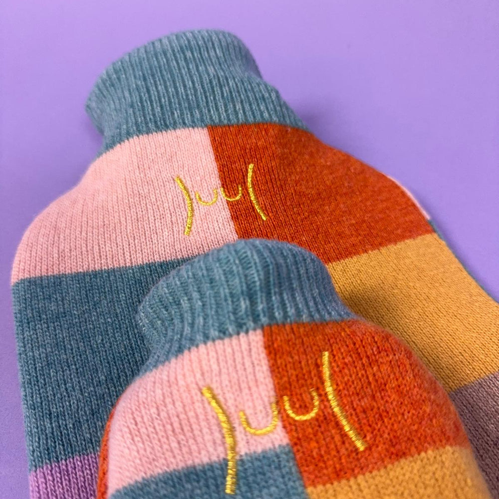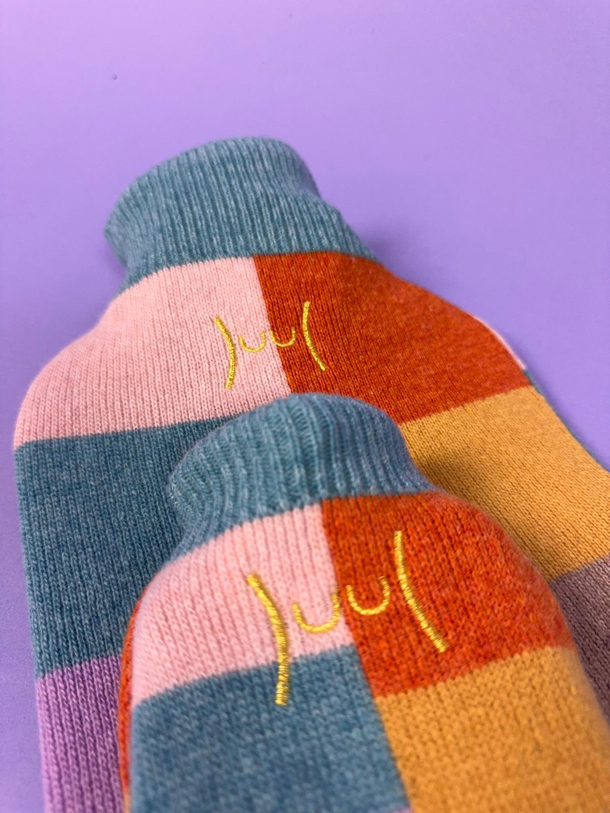 Ein kleine Farbklecks für kalte Tage – meine Merino-Wärmflasche sorgt für wohlige Wärme und gute Laune! Im unverwechselbaren 24/7 Stil ist sie der perfekte Begleiter, um an frostigen Tagen gemütlich zu entspannen. Die weiche Merino-Faser sorgt für ein angenehmes, wohliges Gefühl und die bunten Farben hellen deine Stimmung auf und sorgen für gute Laune. Ob beim gemütlichen Lesen, beim Entspannen auf der Couch oder einfach nur, um dich warm zu halten – diese Wärmflasche ist mehr als nur ein Wärmespender, sie ist ein kleines Stück Freude, das dich durch die kalten Tage begleitet.