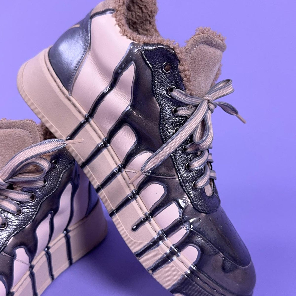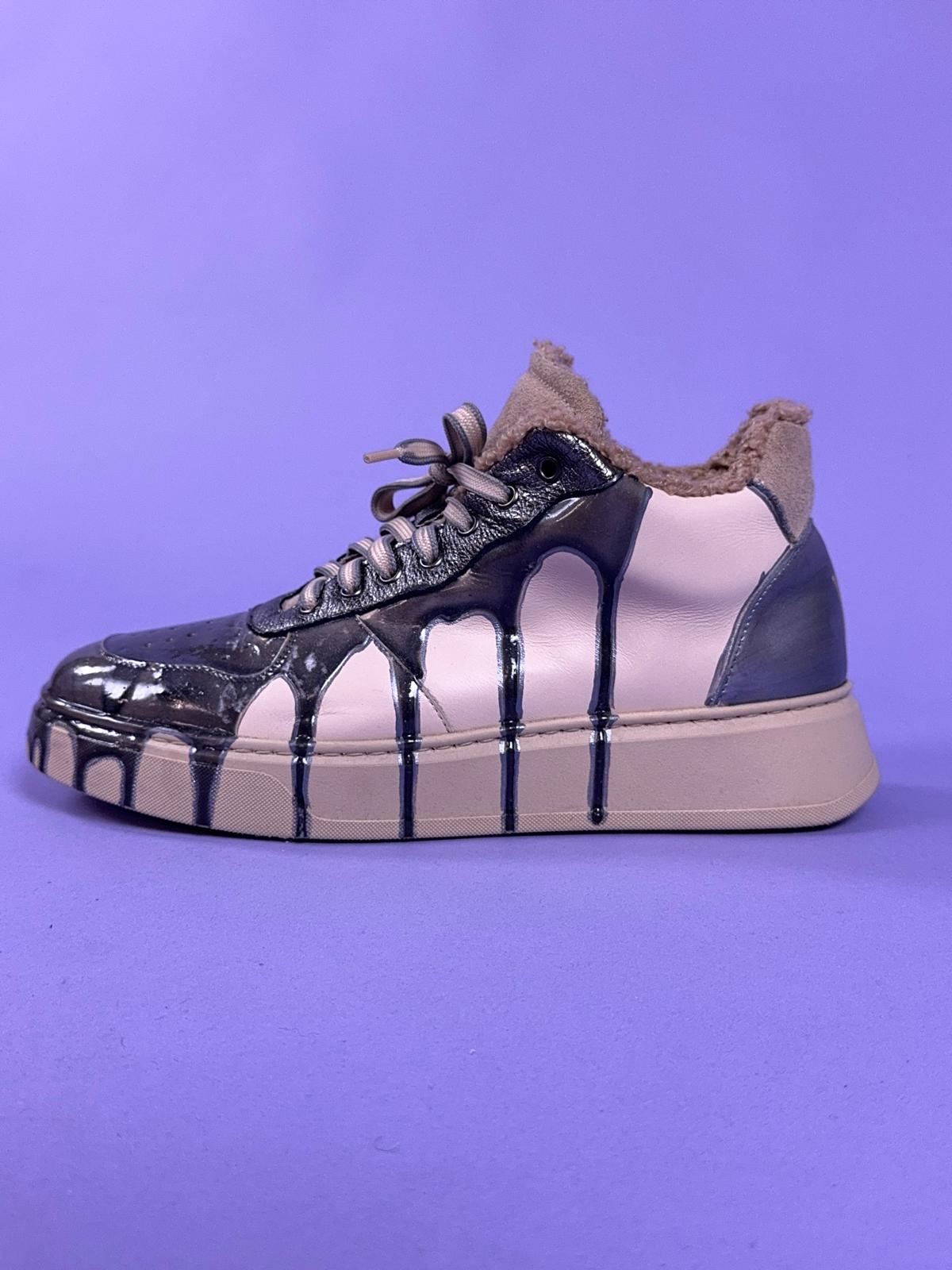 Der Turnschuh, der ein kleines Kunstwerk ist.